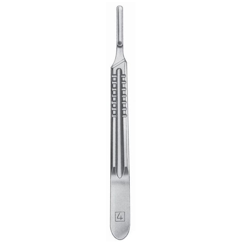 MANGO DE BIRTURI No 4, EN ACERO INOXIDABLE. PARA HOJAS DE BISTURI No 20-21-22-23.